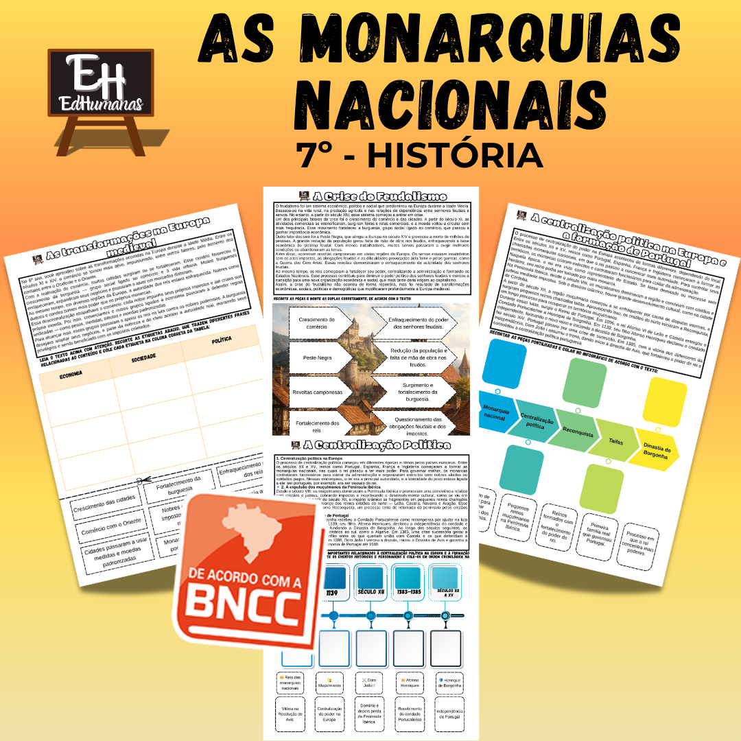 Kit de sequência didática sobre As monarquias nacionais com textos simples e atividades dinâmicas.